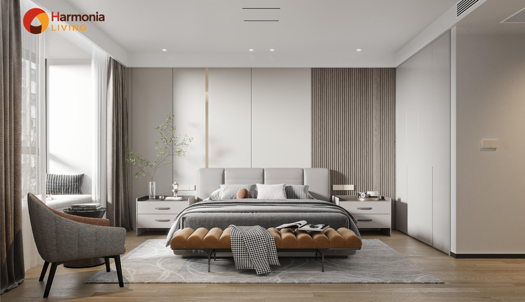 Cách bố trí đúng giúp phòng ngủ luôn thoáng khí ban ngày và tối hoàn toàn khi nghỉ ngơi.