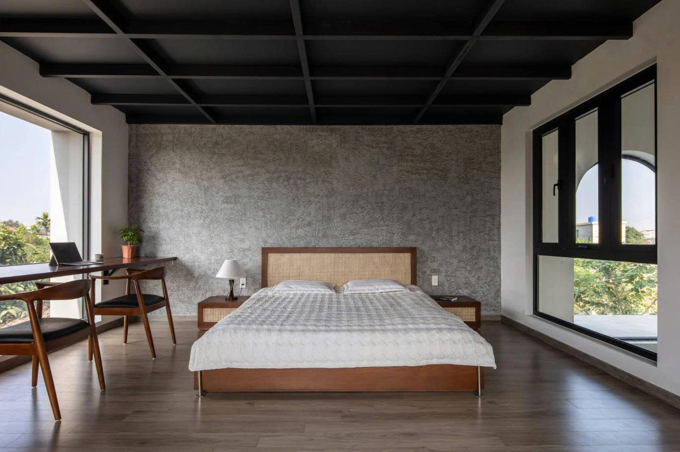 Thiết kế phòng khách và phòng ngủ sử dụng gỗ, vải và ánh sáng tự nhiên