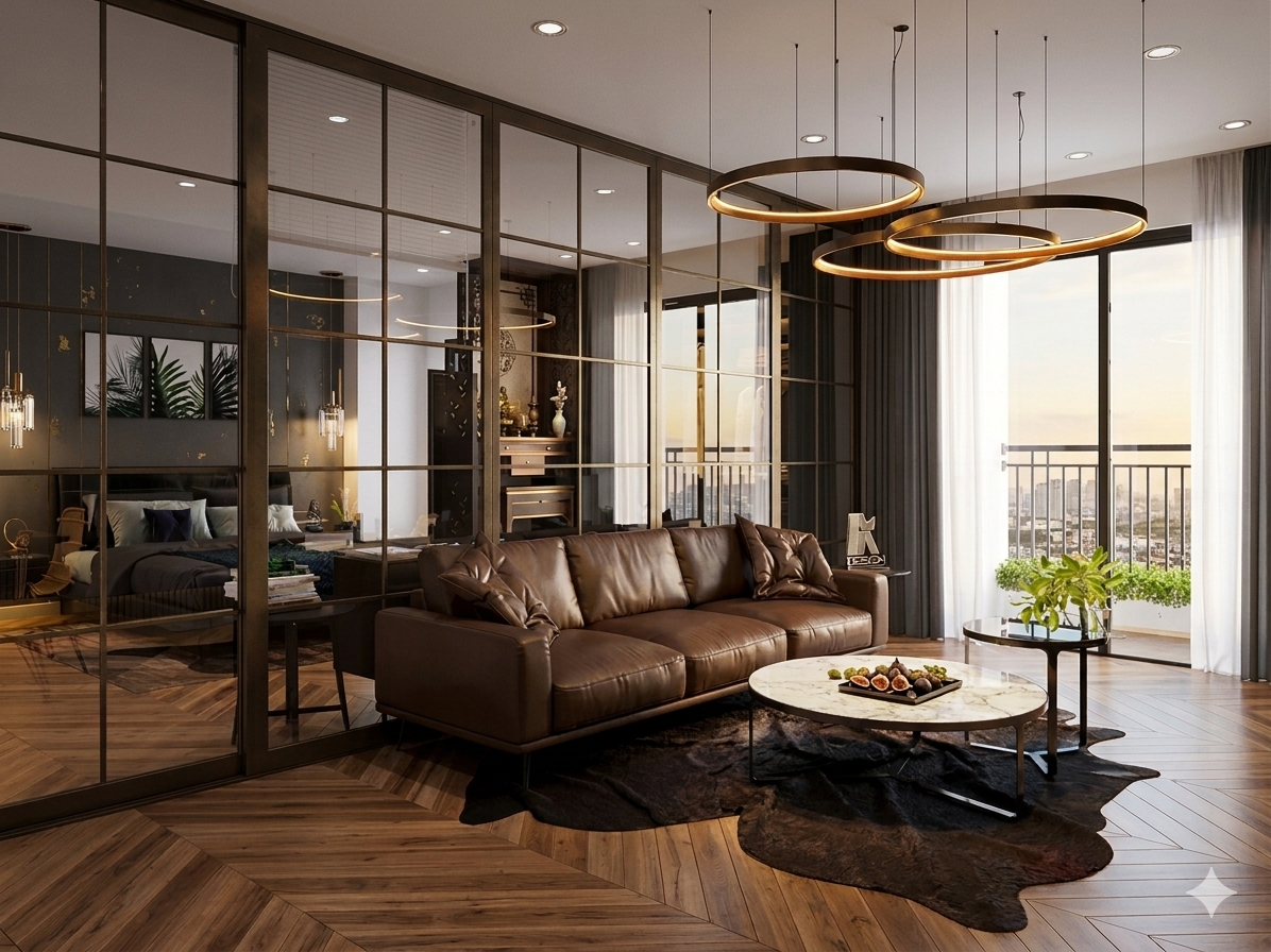 3. Vách kính phòng khách tạo không gian mở, sang trọng